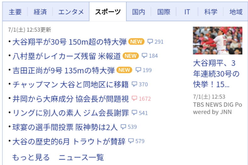 Yahooニュース「吉田正尚が9号 135mの特大弾」吉田スゲーな…ん?上に何か書いてあるな
