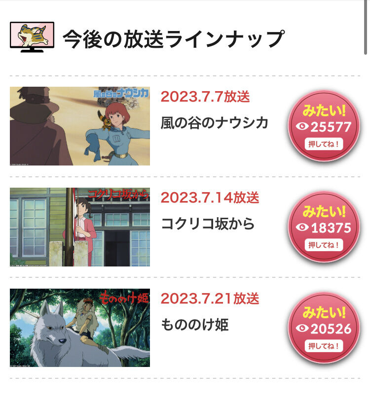 金曜ロードショー「今年の夏もジブリ祭り!」俺「どうせ猫の恩返しとかマーニーだろ…」