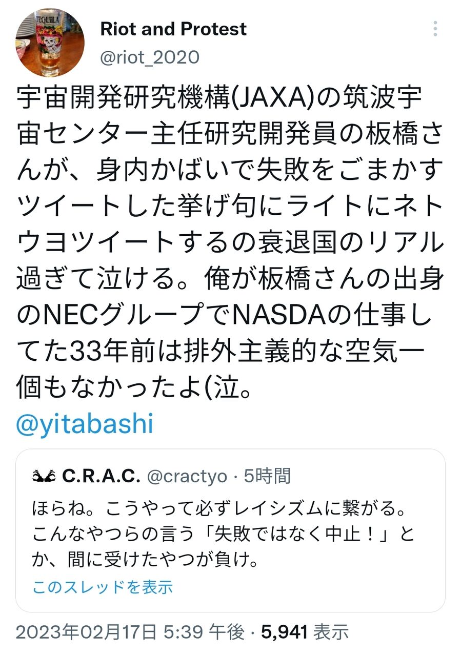 【悲報】JAXA主任研究員「日本語が噛み合わないと思ったらお隣の国の出先機関でしたか」