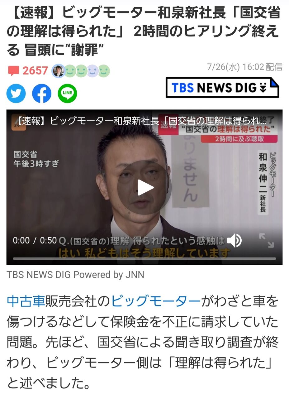 ビッグモーター新社長が勝ち名乗り。「国交省の理解は得られた」