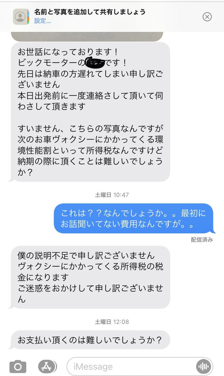 ぴよこ👶🏻2y+2人目不妊→19w @yokomizochu_i. ビッグモーターの担当者が送ってきたSMSです。