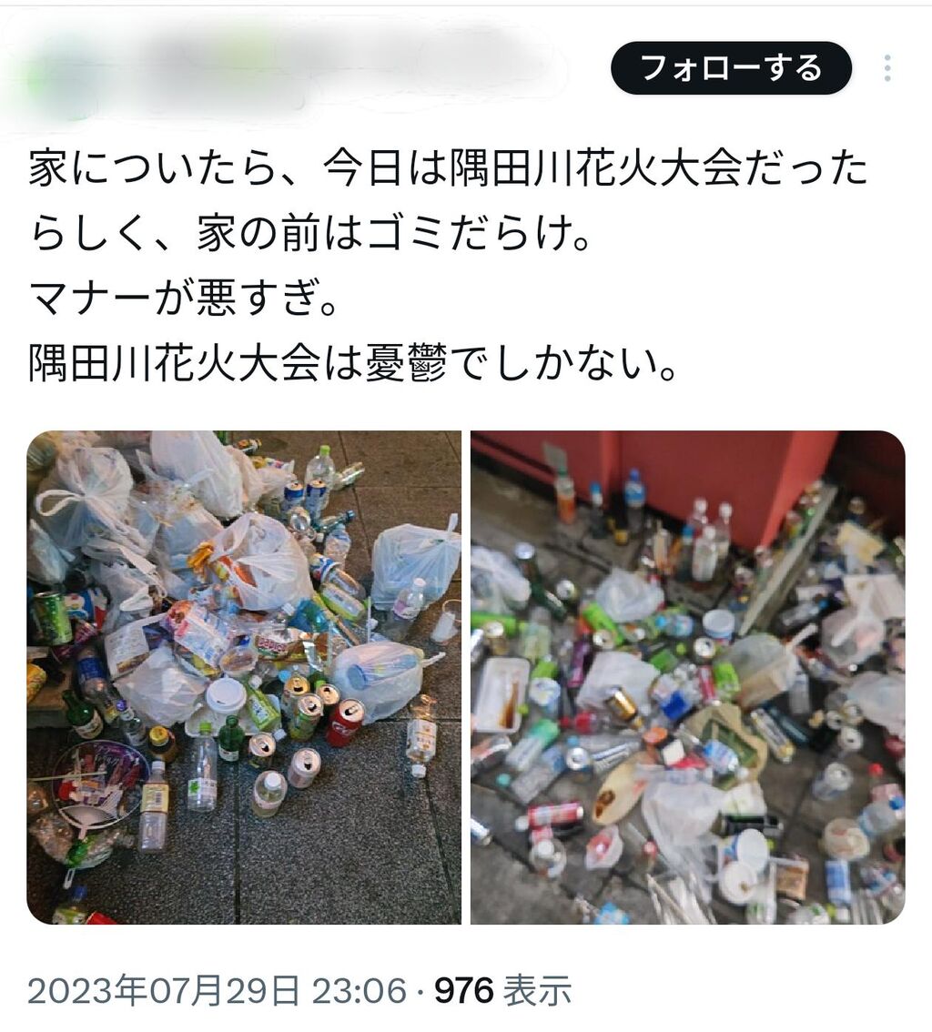 【画像】隅田川花火大会の観客さん、マナー最悪で近隣住民ブチギレwwwwww
