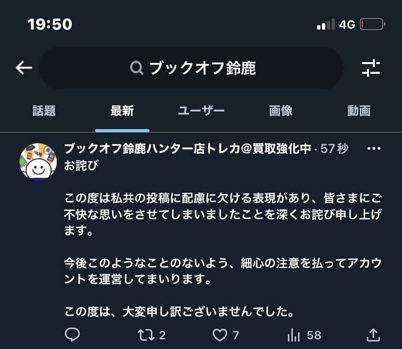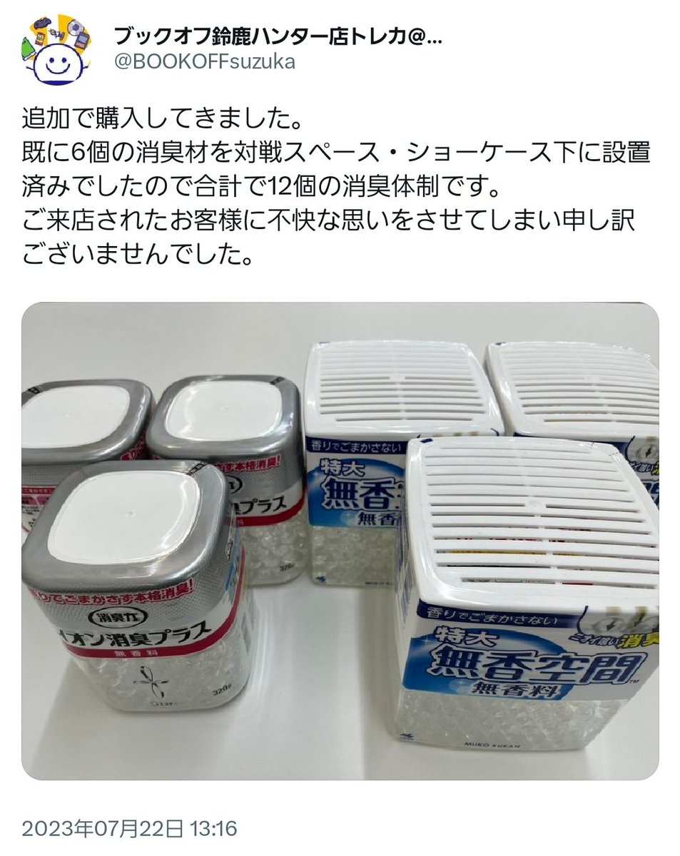 【悲報】ブックオフ鈴鹿店トレカ客に風呂入れとツイ→大炎上し謝罪&削除
