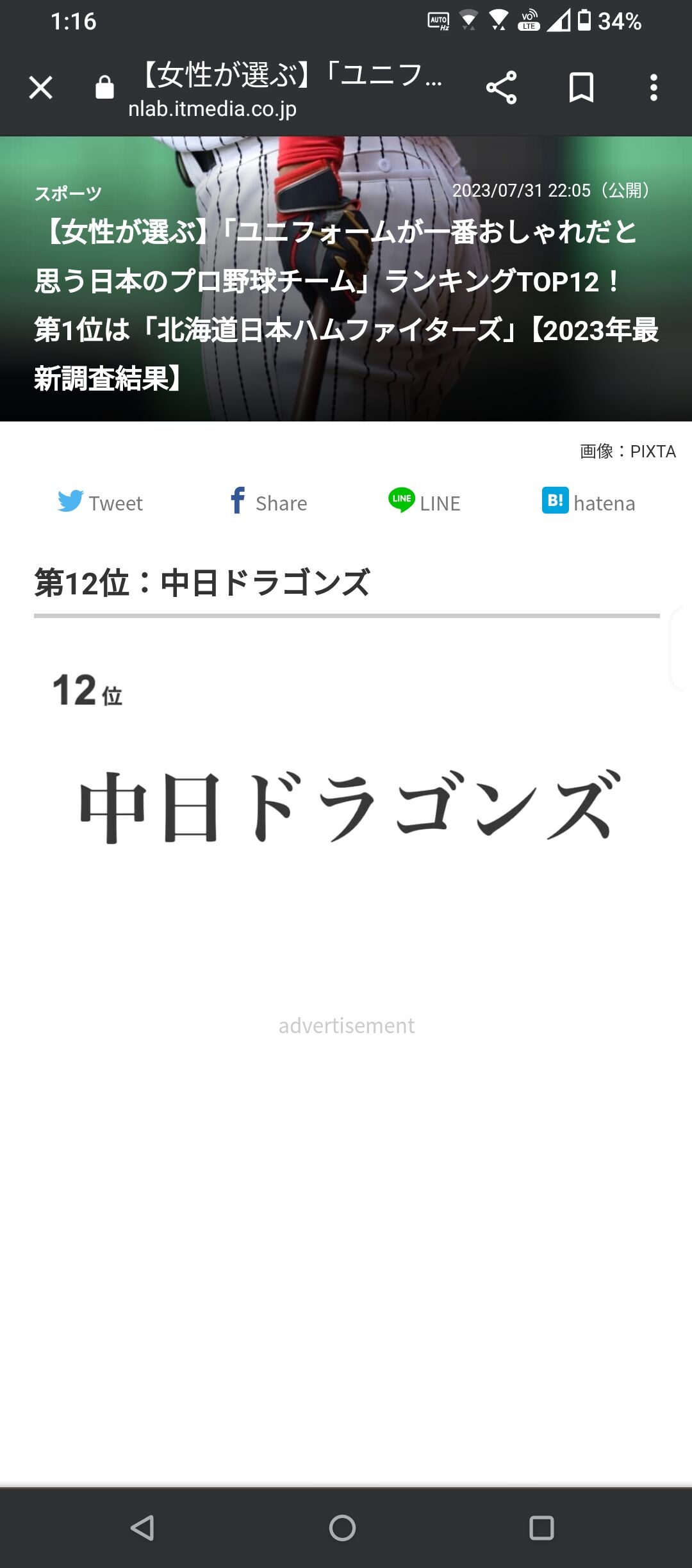 1位ハムから次のページ押したらいきなりビリケツ発表で草