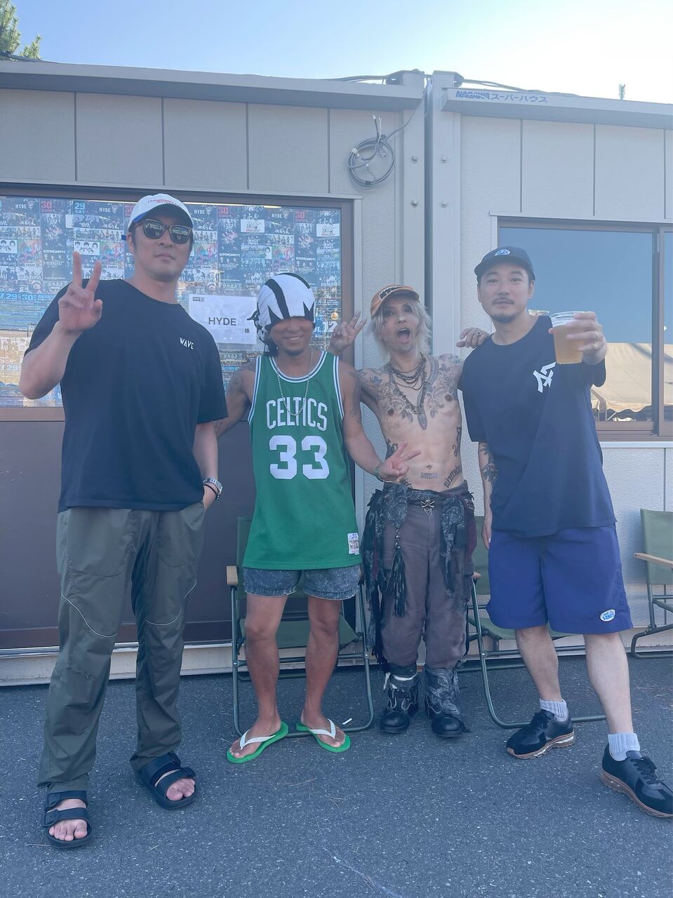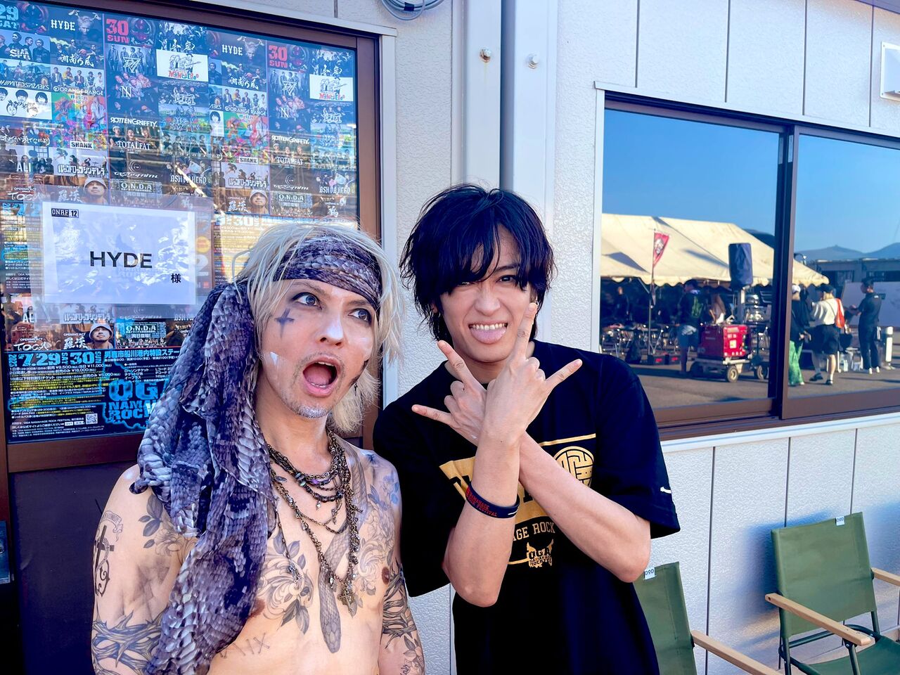 HYDEさんは出演した29日から31日に掛けてXで共演者との写真を公開。湘南乃風のSHOCK EYEさんと海沿いで撮影した写真やDragonAshの降谷建志(Kj)さんとのツーショット、10-FEETのTAKUMAさんとの写真などを披露した。