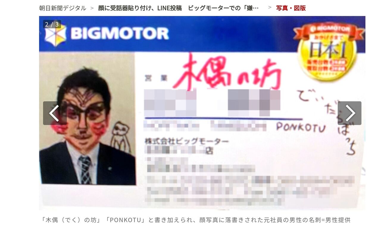 ビッグモーター、社員の名刺に落書きして大はしゃぎ