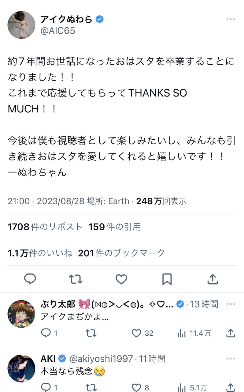 【朗報】アイクぬわら「今後は僕もおはスタを視聴者として楽しみます!!」