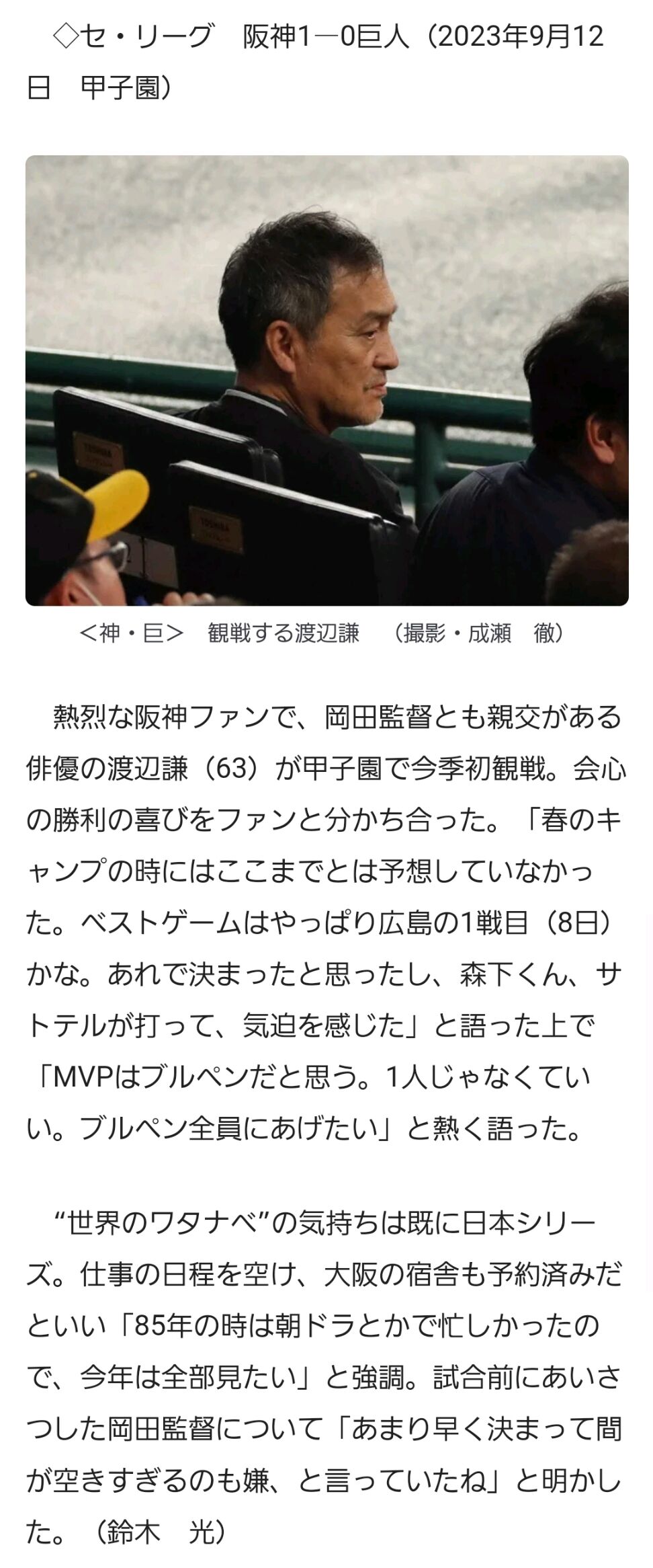 渡辺謙大阪入り、残りの試合全部見るためにスケジュール全開けwwwwwwww