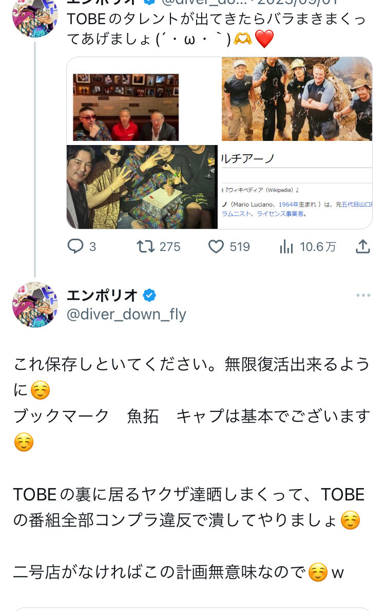 【悲報】ジャニオタさん、TOBE(滝沢秀明の事務所)潰しを始めるwww