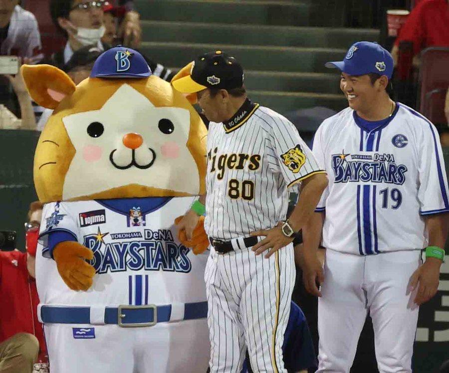 【画像】岡田監督、DeNAのマスコットにメロメロ