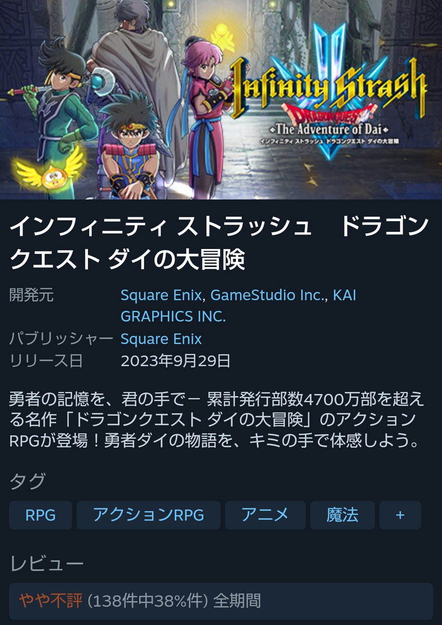 【悲報】Switch最後の希望「ダイの大冒険」ユーザースコア3.8・・・