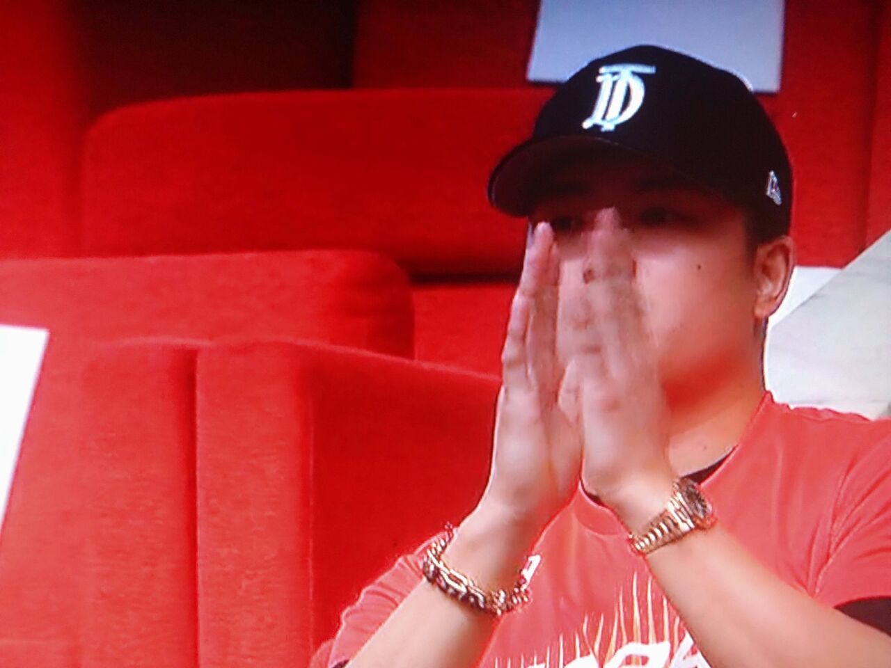 【画像】村上宗隆さん、キンキラキンのアクセサリーを身に着けバレー日本代表戦の中継に映ってしまう