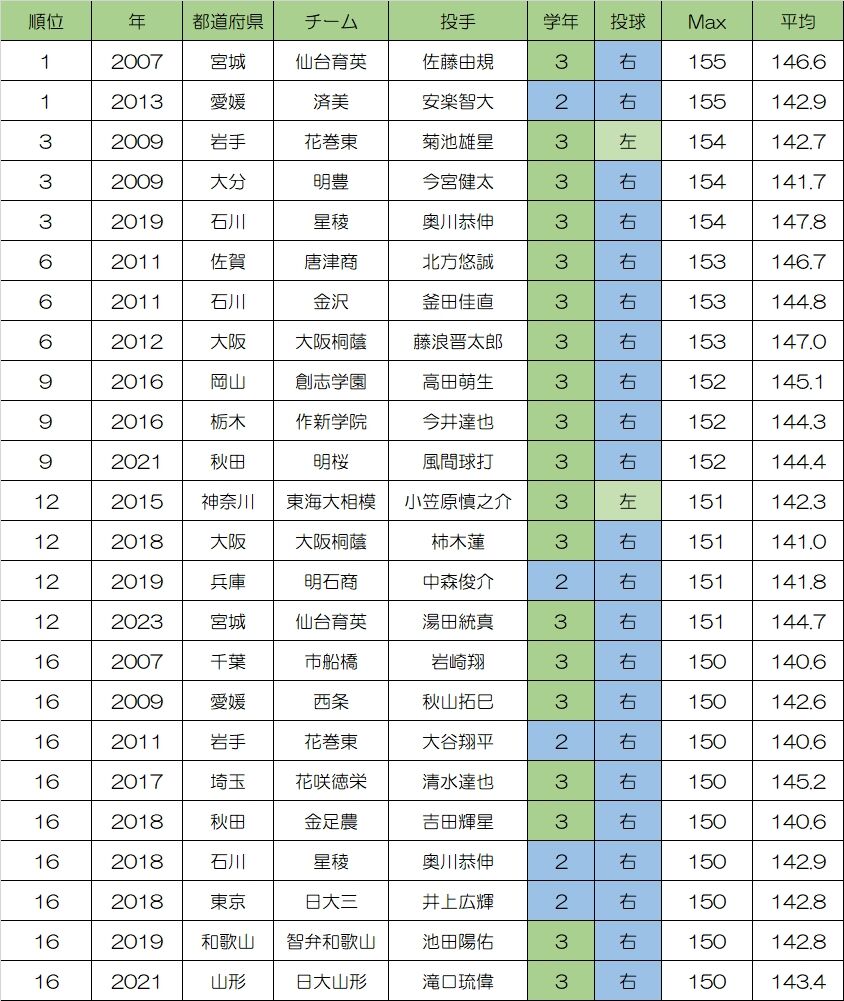 2007年佐藤由規 MAX155、平均146キロ←最速、平均歴代1位