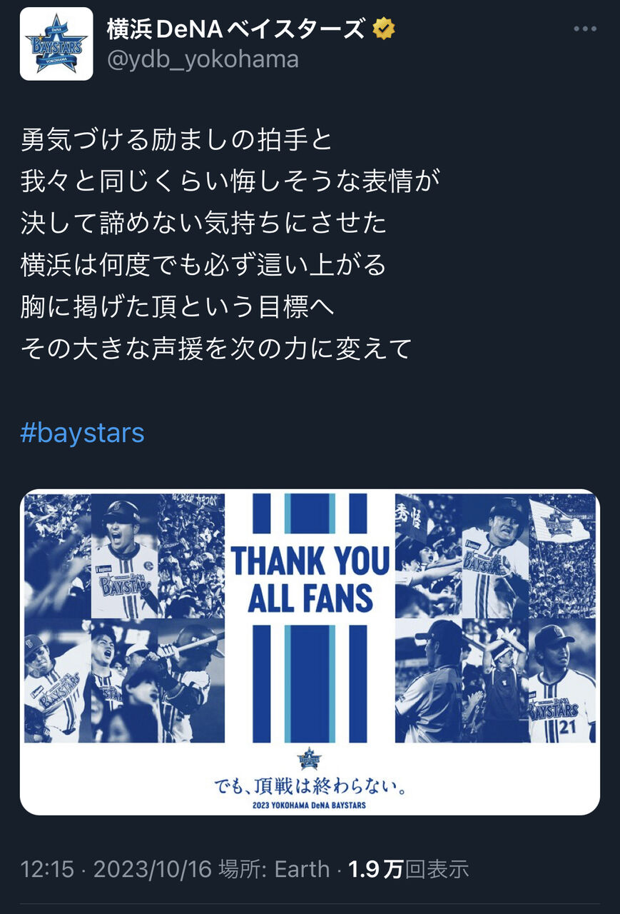 【画像】横浜DeNAベイスターズさん、お気持ちポエム表明wwwwwwwwwww