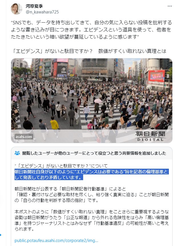 【画像】朝日新聞「エビデンスないとだめですか?」朝日新聞「ダメです」