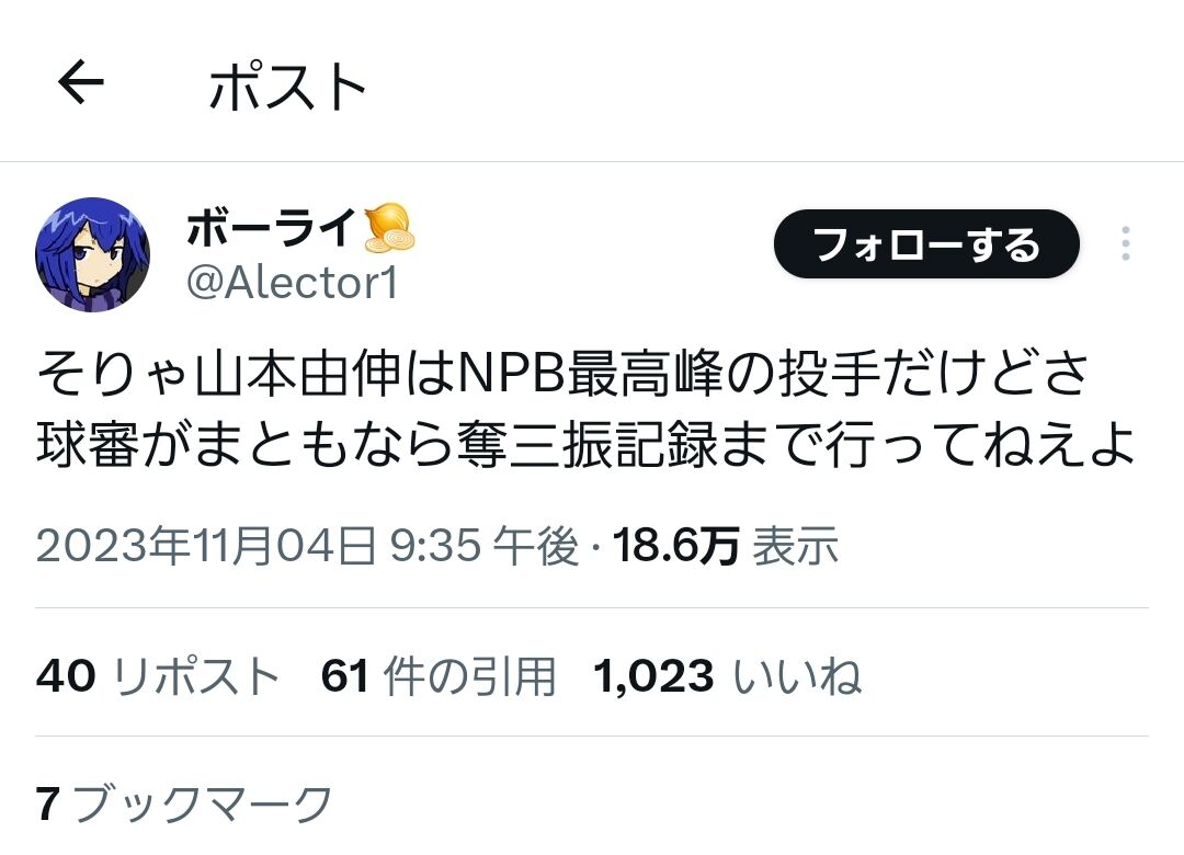 阪神ファン「球審がマトモだったら奪三振記録なんて作れてねえよ」←バズってる模様