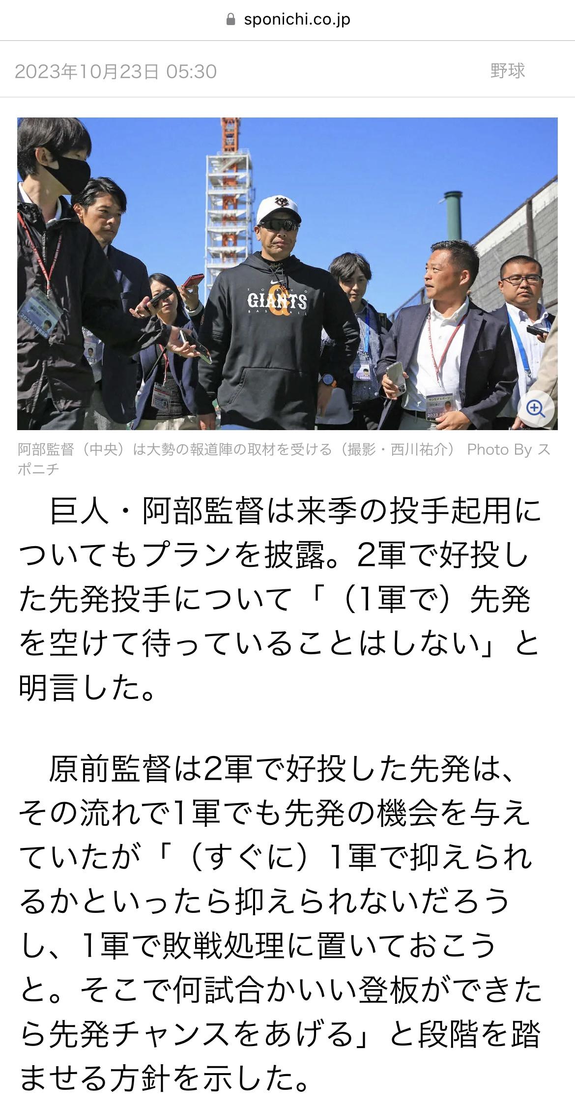 【巨人】阿部「2軍で好投しても全員1軍敗戦処理スタート。どうせ1軍で先発させても抑えられない」