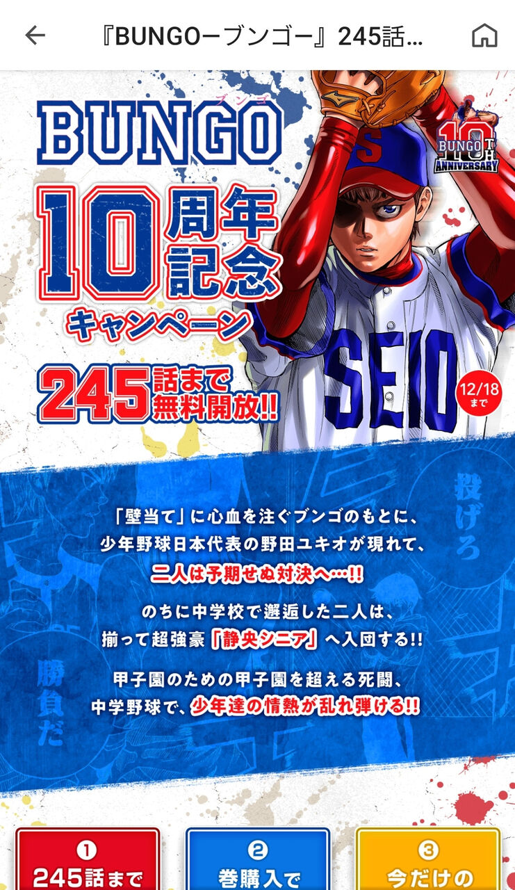 野球漫画「BUNGO -ブンゴ」、連載10周年