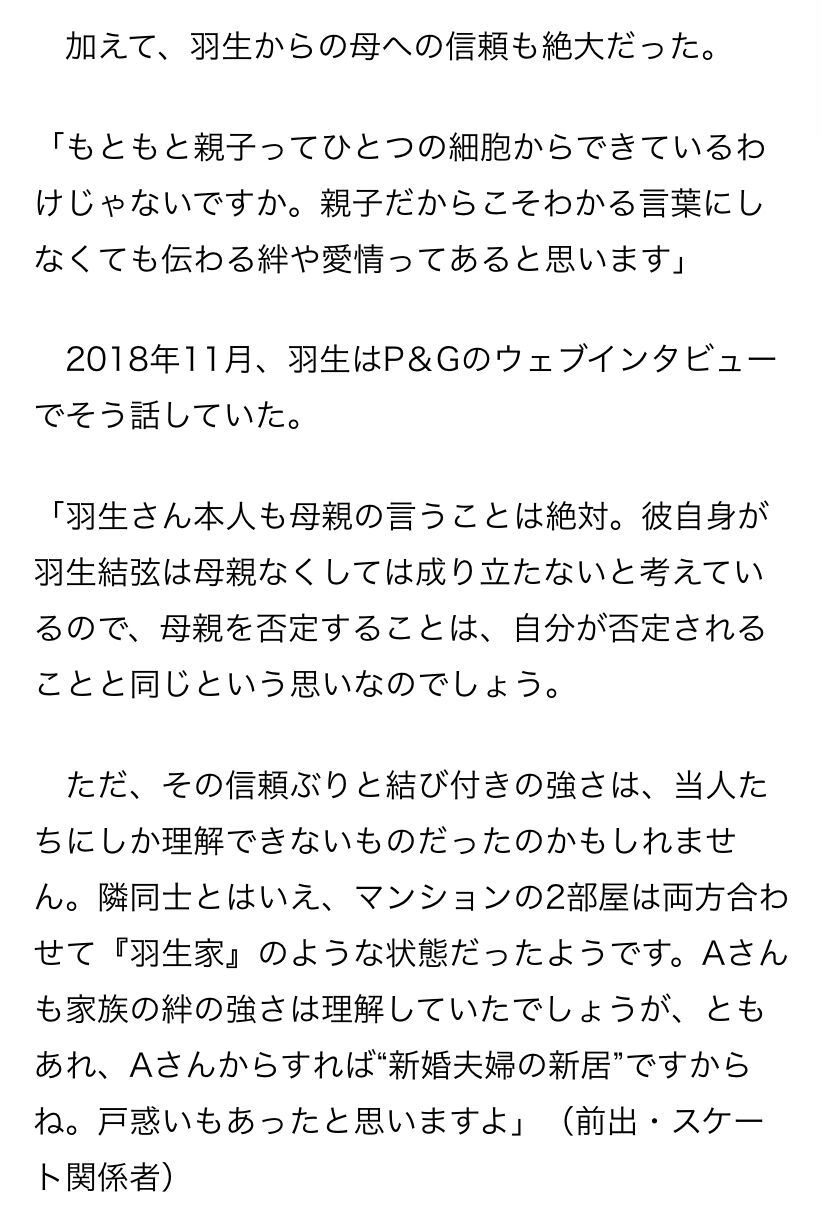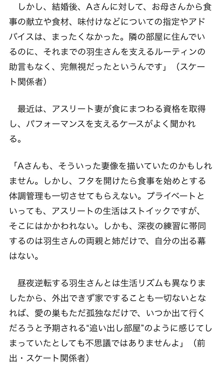 マスコミ云々は体の良い建前やろうなとは思っとったが、まぁ実際は羽生らしい離婚理由やったな