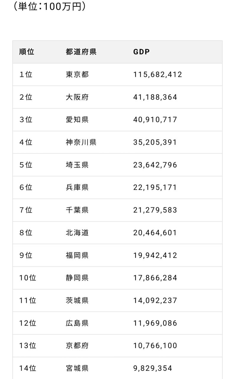 都道府県GDP3位の愛知さん、2位の大阪さんに迫る
