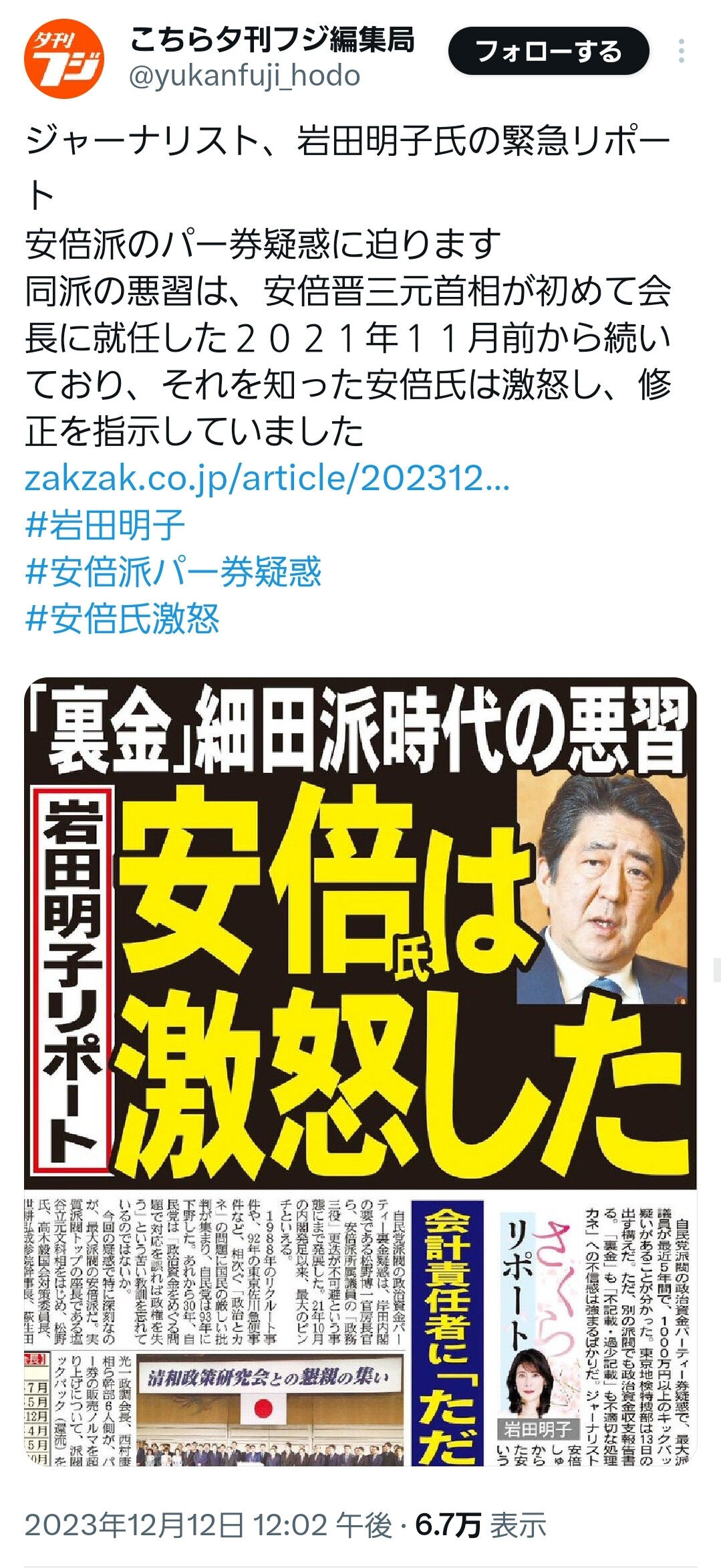【感動】安倍派の裏金を知った安倍晋三は激怒、修正を指示していた
