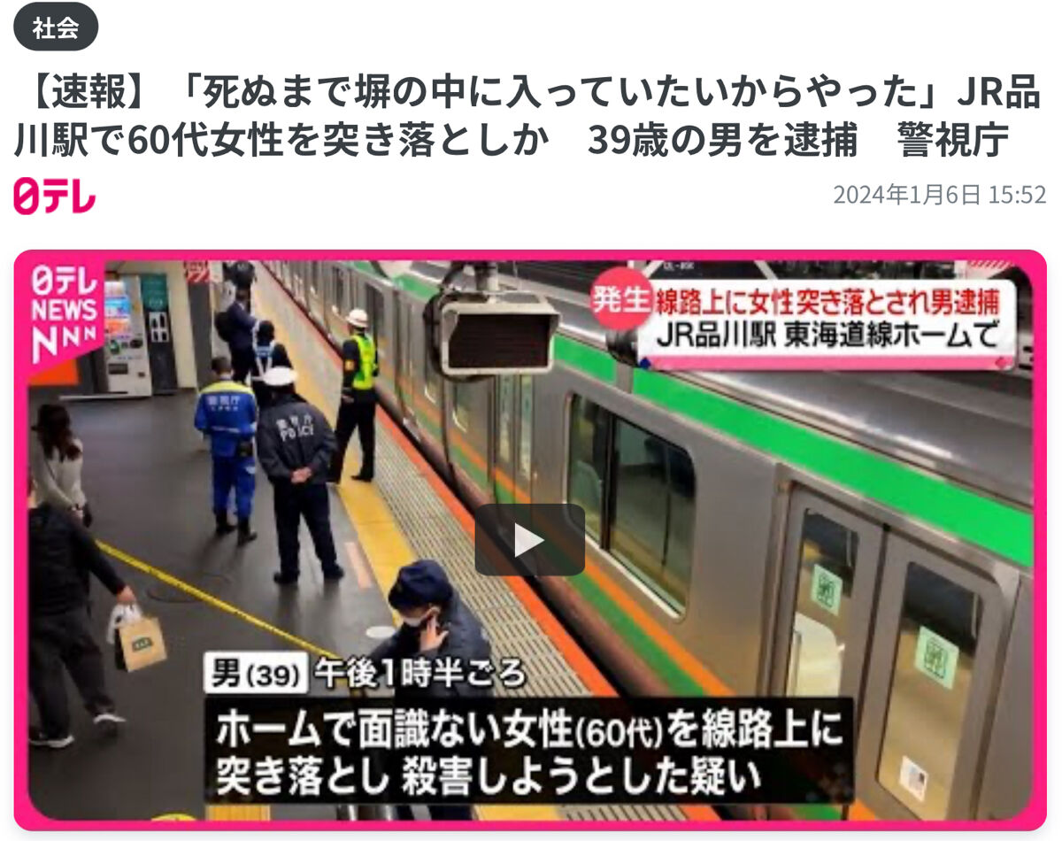 【画像】弱者男性(39)、正月から社会に迷惑をかける…60代のおばあちゃんを駅のホームから突き落とす