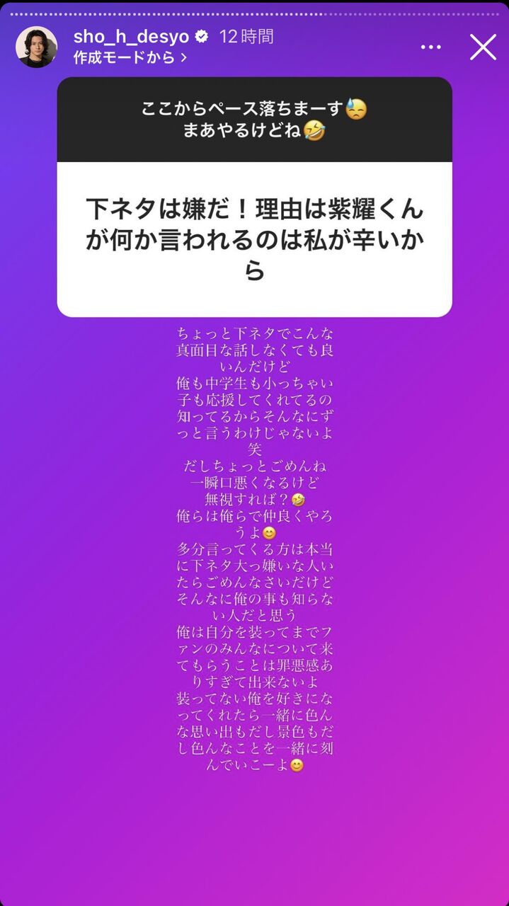 ファン『紫耀くん下ネタやめて!』平野紫耀『ごめんだけど無視すれば?俺は下ネタを言い続ける。』