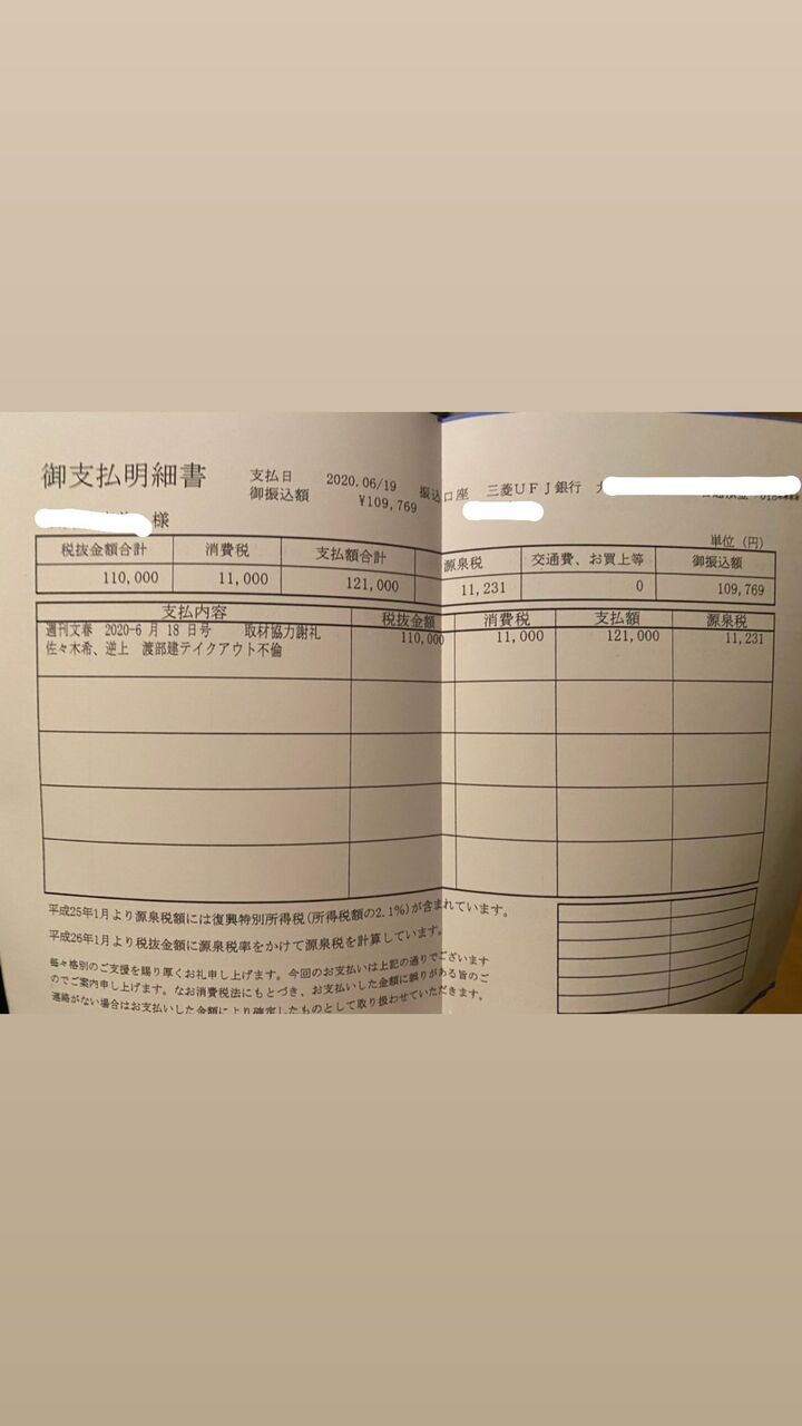 アンジャッシュ渡部を文春に売った女さん、文春から貰った報酬「渡部11回分」