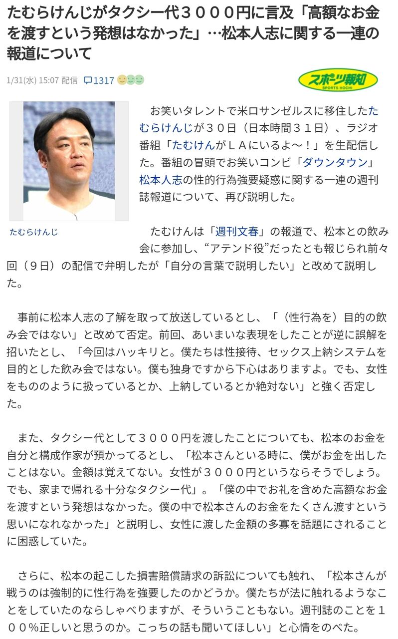 【悲報】日本人さん、文春の記事を100%信じてしまう。たむけん「こっちの話も少しは聞いてや」
