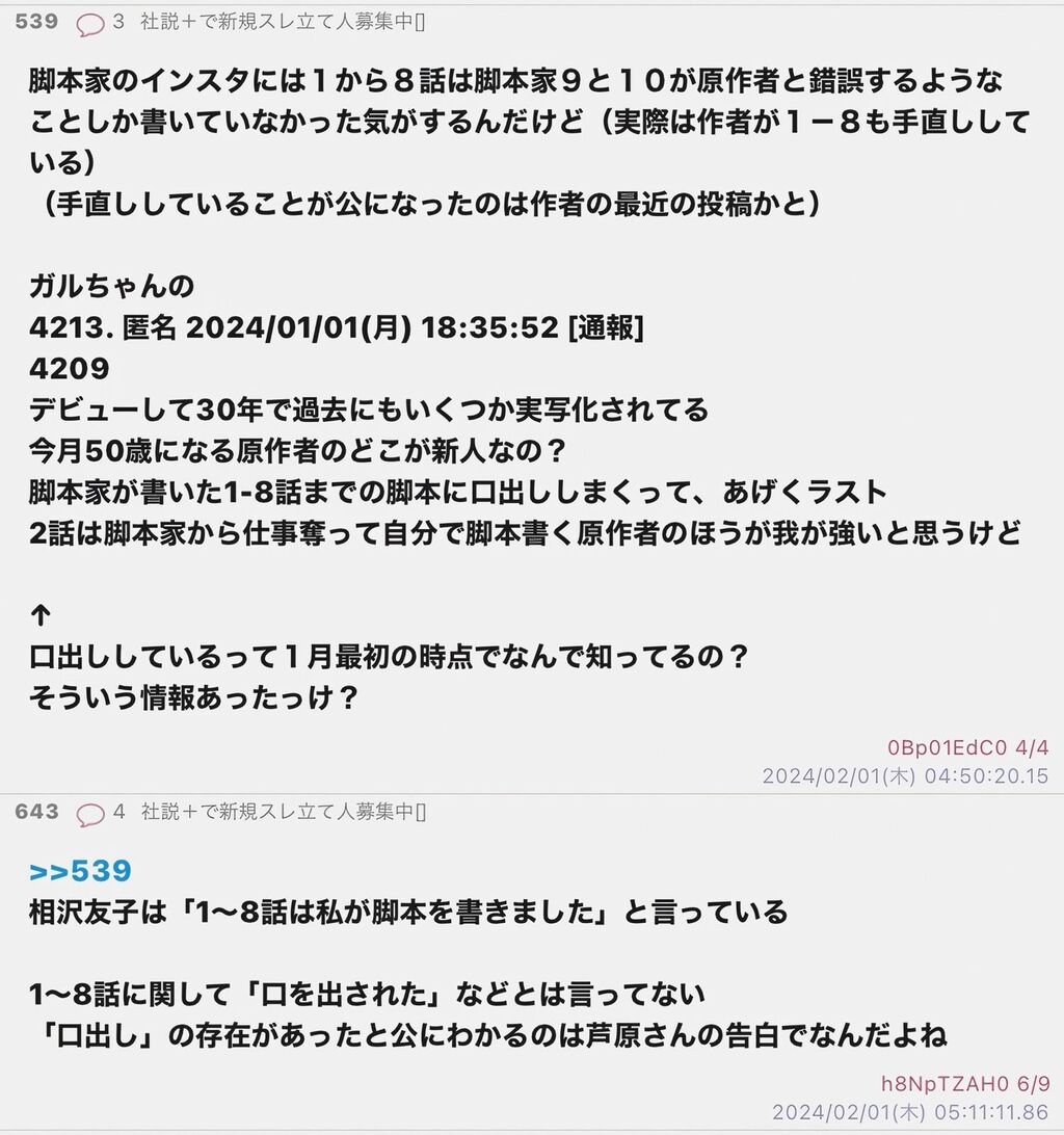 脚本家のインスタには1から8話は脚本家9と10が原作者と錯誤するようなことしか書いていなかった気がするんだけど(実際は作者が1-8も手直ししている)