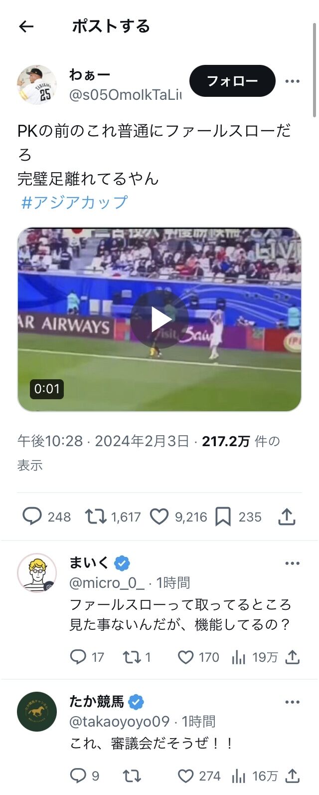 【悲報】サッカー日本代表、本当は勝利していた イラン側の不正なプレーにXで非難集中