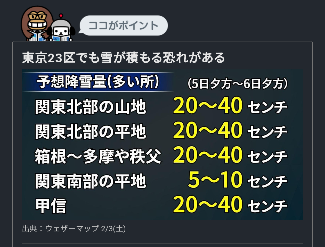 気象庁は5日以降に関東・甲信地方で警報級の大雪になる可能性を発表。近畿エリアでも4日に一部大雪のおそれがあります。森田正光気象予報士は東京都心でも5センチを超える積雪の可能性を指摘。
