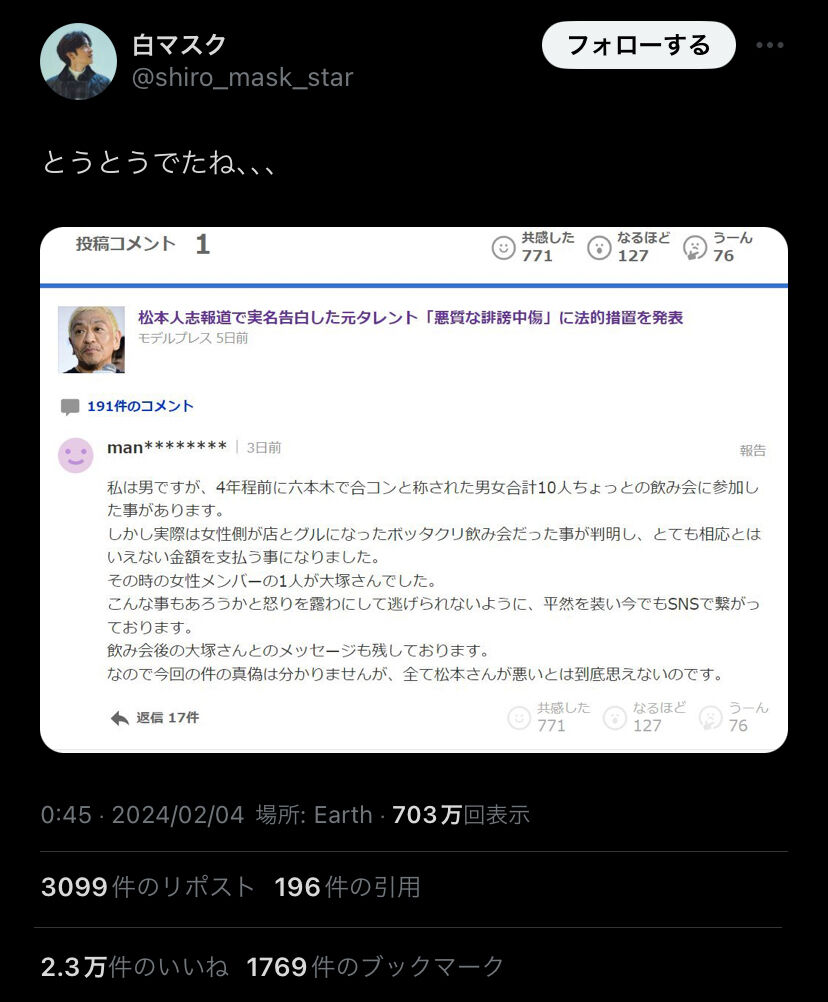 【朗報】松本人志、遂に強力な援護がくる!!!!