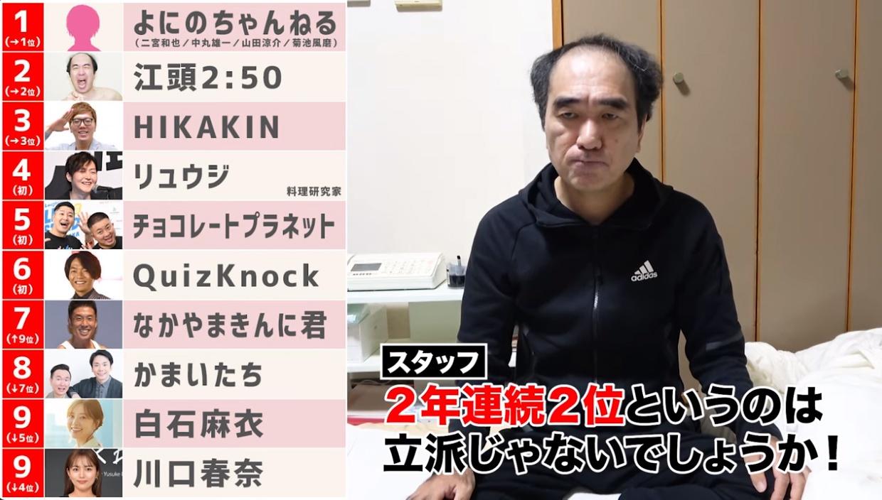【悲報】江頭2:50さん、終了へのカウントダウンか…「好きなYouTuberランキング」2連敗