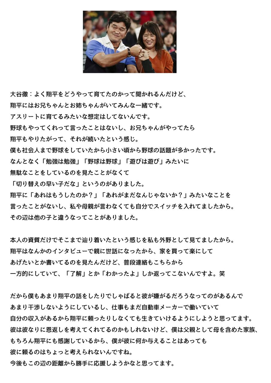 大谷父「息子の金なんて要らない、困ったら戻ってこい」