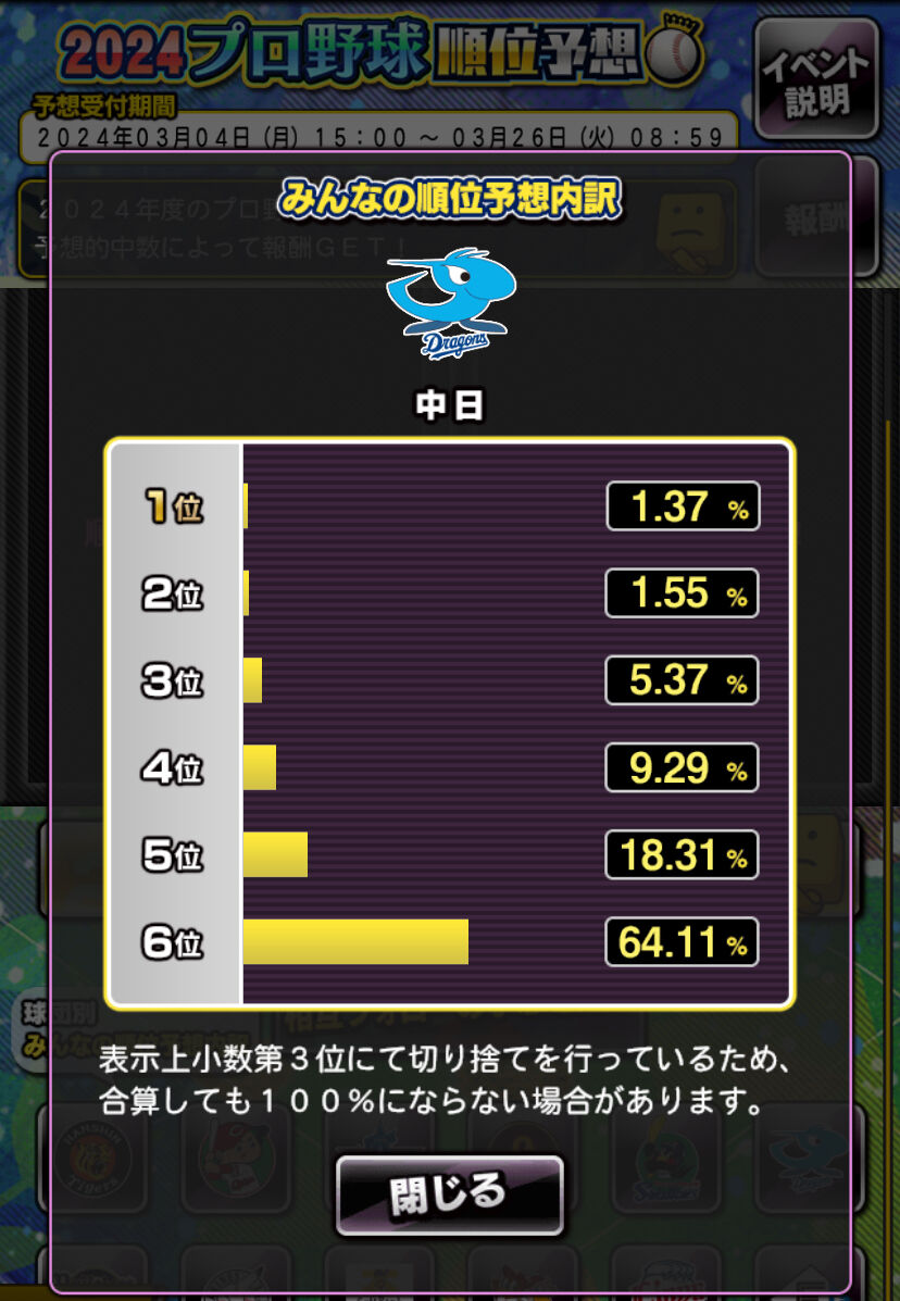 中日ズンドラゴ、2位以上の予想すら3%未満