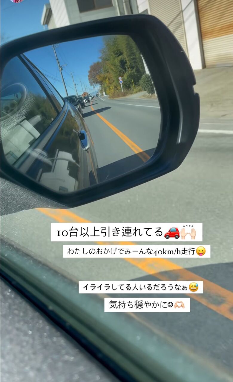 女「10台以上引き連れてる。わたしのおかげでみーんな40km走行w」