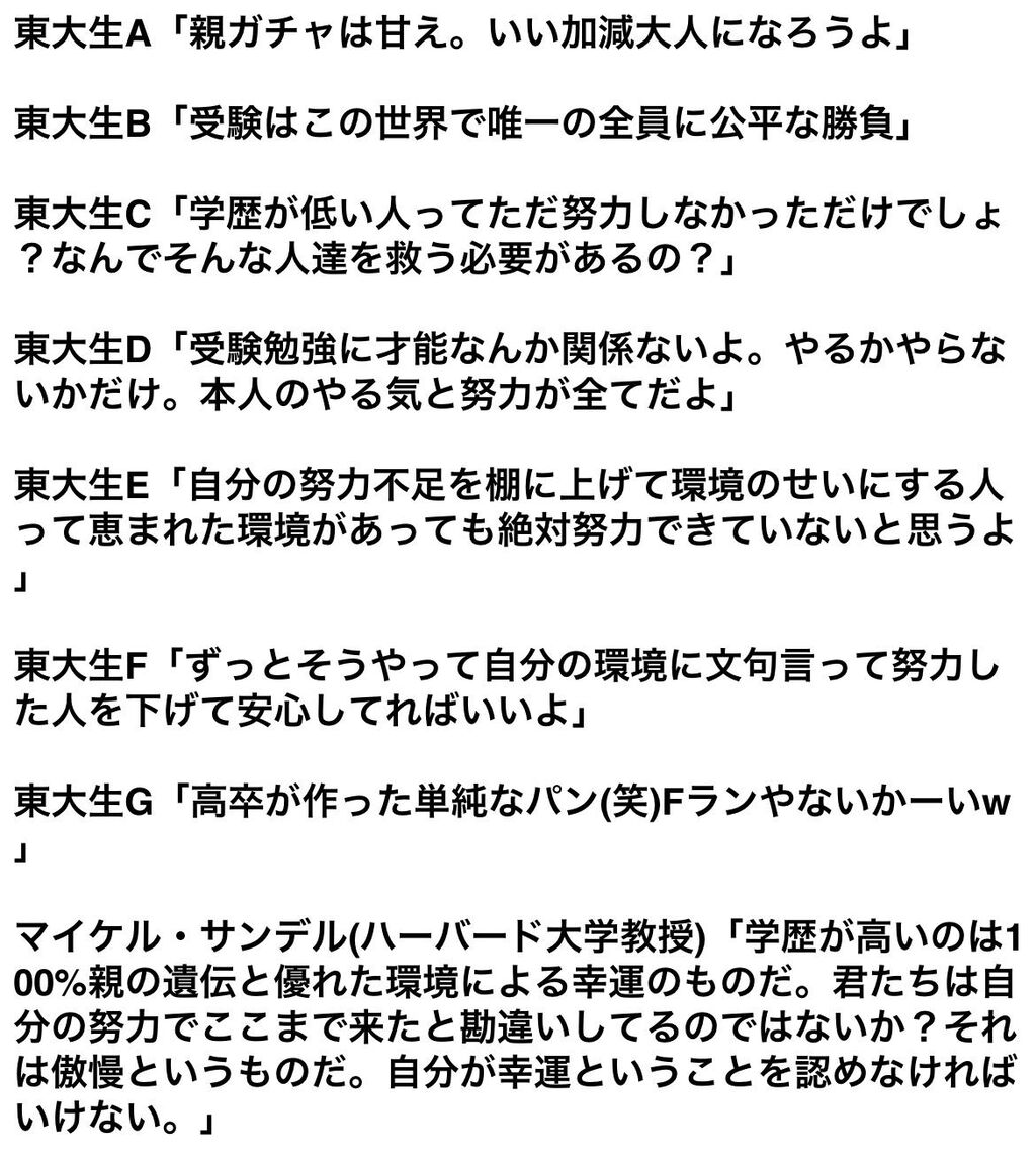 東大生「親ガチャは甘え、自己責任」ハーバード大学教授「それは違う。傲慢になるな」