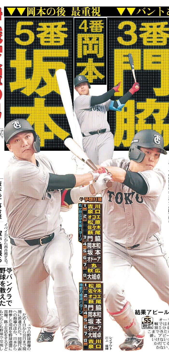 【画像】スポーツ報知、阿部監督インタビューをもとに開幕オーダー予想wwwwww