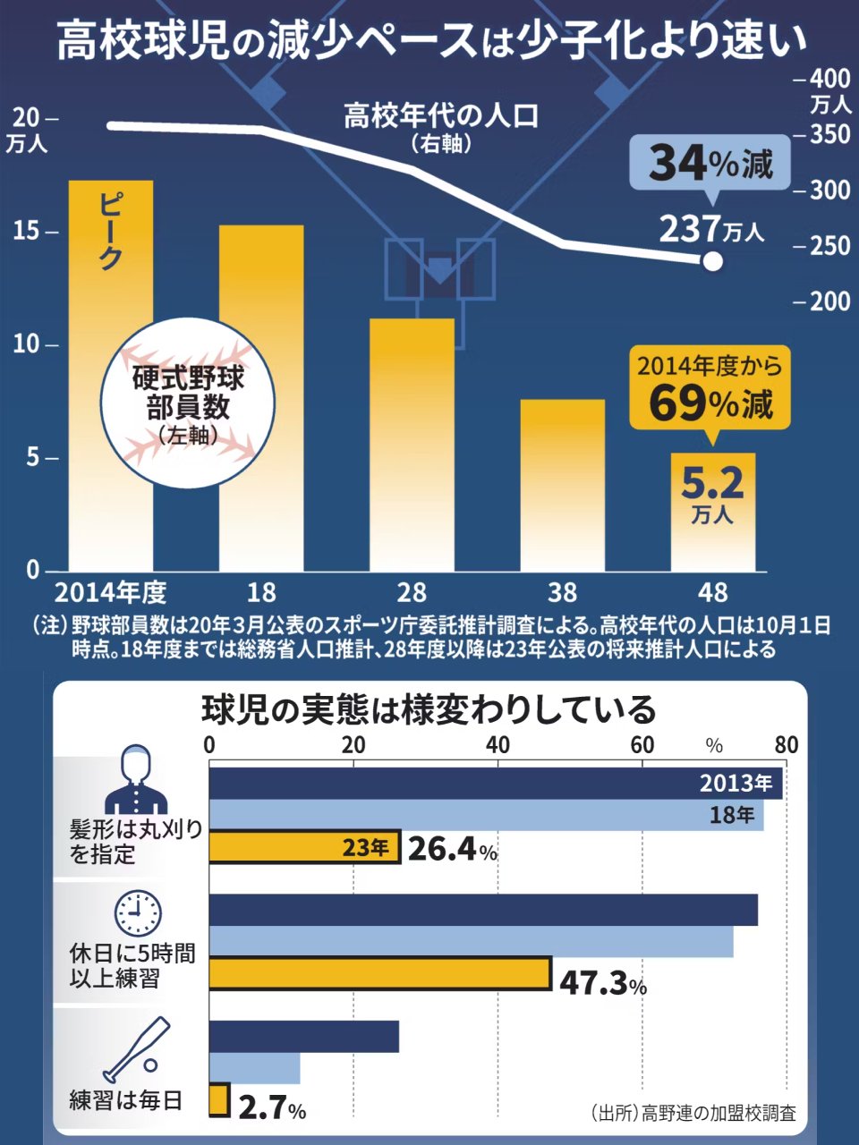 【画像】高校野球の部員数、とんでもないペースで減少してることが判明