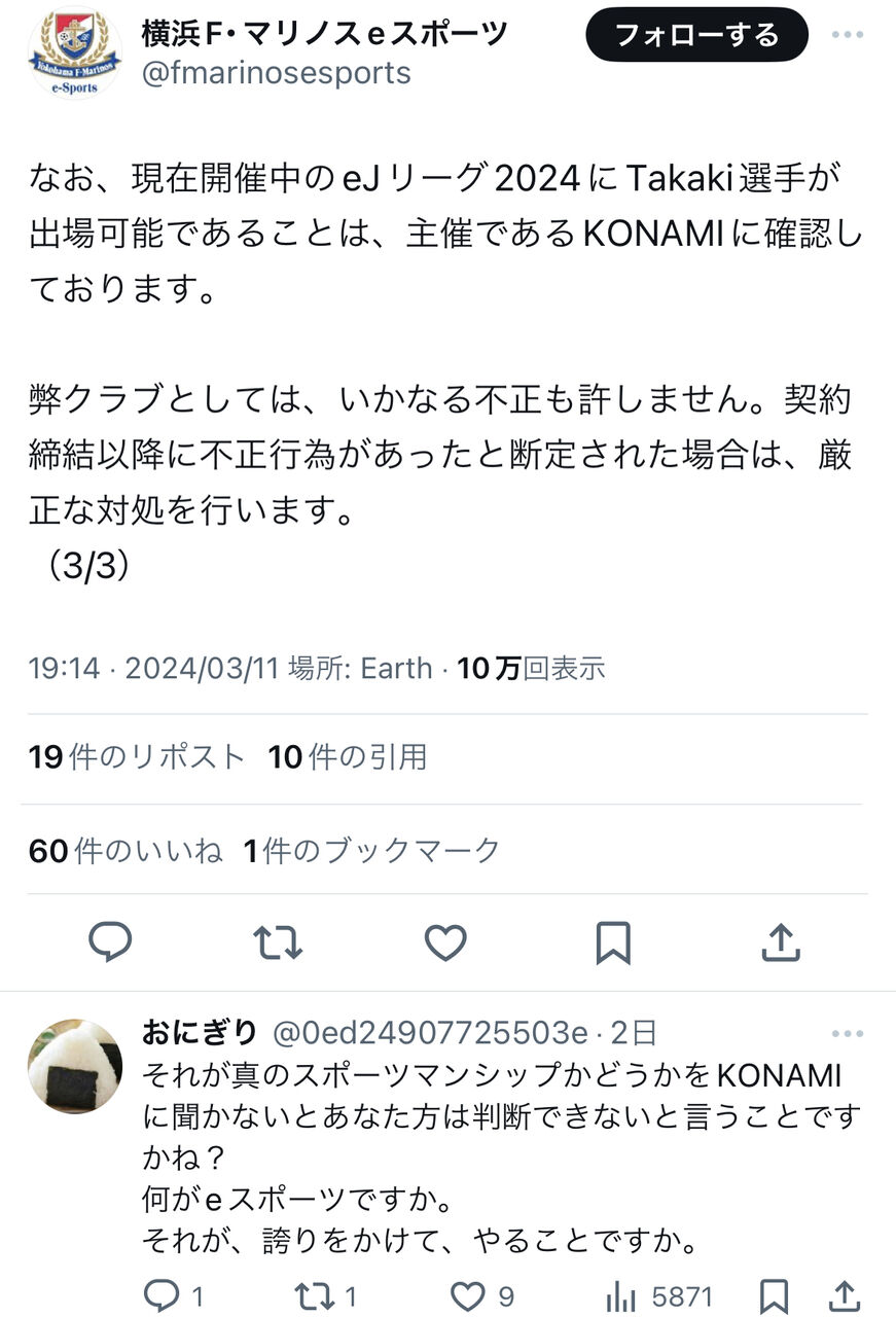 プロゲーマー不正疑惑の横浜Fマリノスさん「KONAMIにBANされたけど不正はしてない」→無事炎上へw