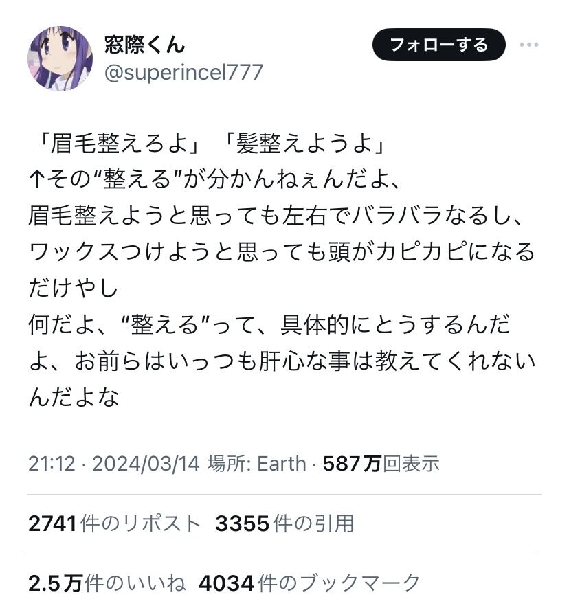 【悲報】🤓「眉毛整えろって言われてもやり方がわからねえんだよ💢」