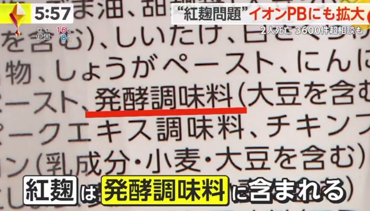 【画像】イオン「すまん😅原材料に紅麹って書いてないけど紅麹使ってるわ😅」