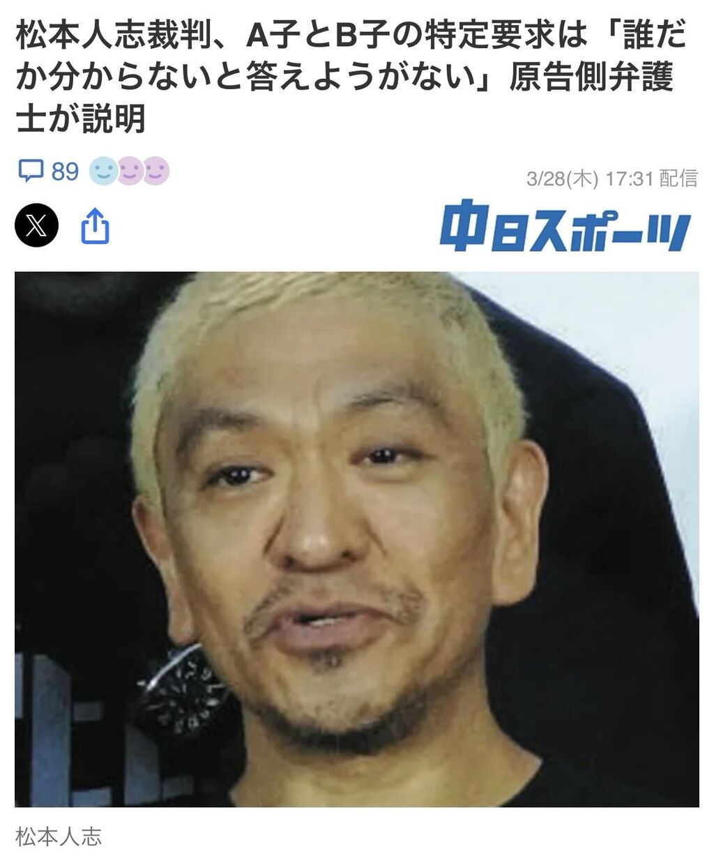 >松本側は、性被害を受けたとされる「A子」と「B子」の名前、住所、生年月日、携帯電話番号、LINEアカウントの提出を文春側に要求。この理由を、松本側の代理人弁護士は「相手が誰だか分からないと、