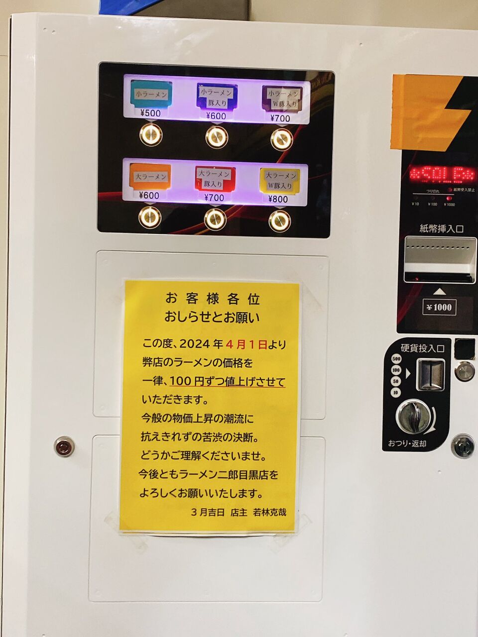 【悲報】ラーメン二郎目黒店、全品100円値上げ