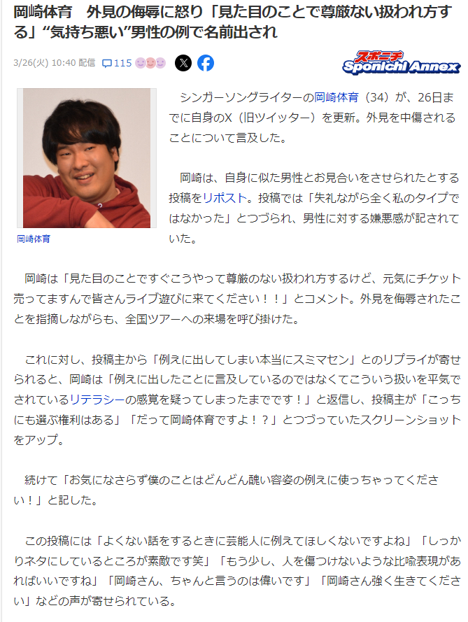 【悲報】岡崎体育さん、エゴサしてブチギレ