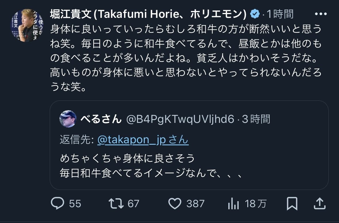 【速報】ホリエモンさん、野菜が身体に良いとのポストにお気持ち表明