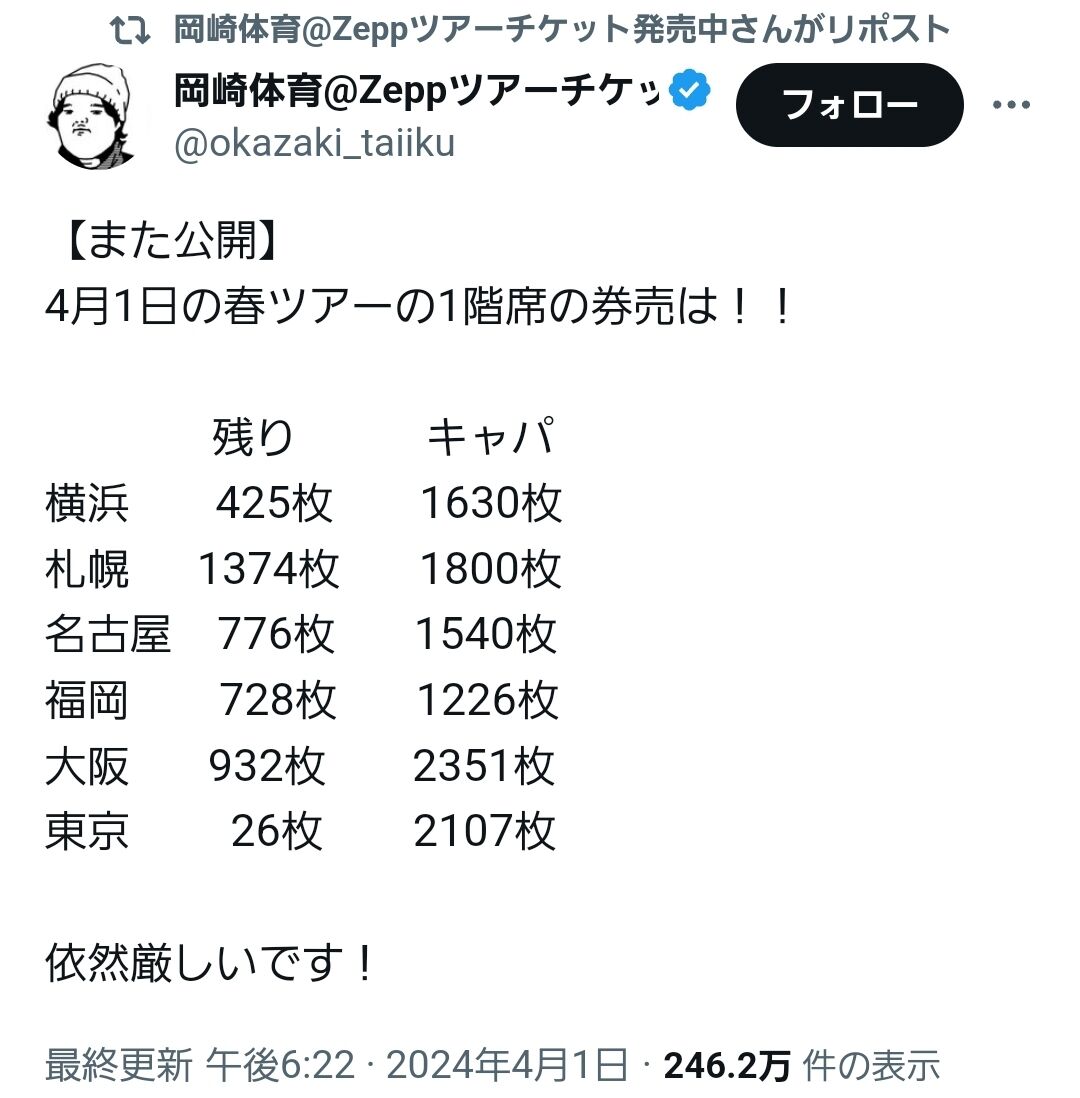 【悲報】岡崎体育さん「ライブのチケットが売れなさすぎて厳しい」
