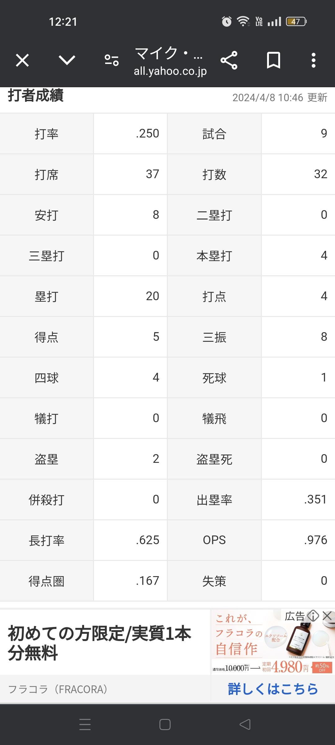 マイク・トラウト「打率.250(32-8)4本4打点 OPS.976」←こいつについての率直な感想wwwwwwww