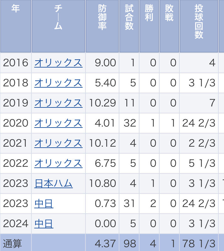 中日・齋藤綱記投手の年度別成績wwwww